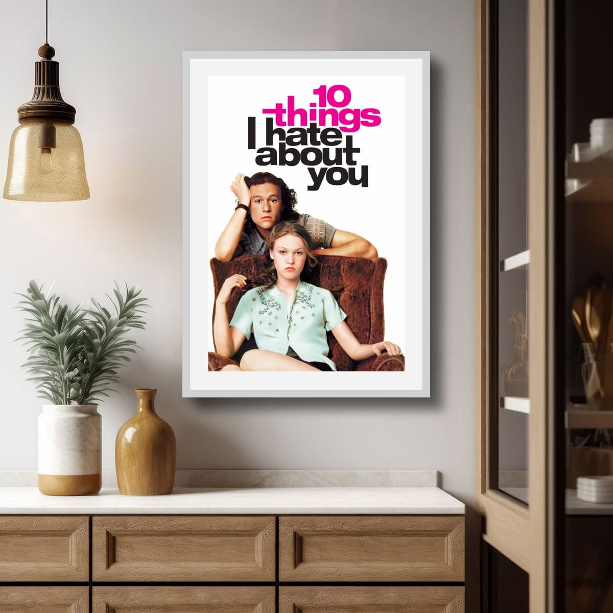 Step into the world of high school drama and romance with this iconic artwork from “10 Things I Hate About You.” Featuring the striking expressions of two central characters, it encapsulates the complexities of teenage relationships, blending humor and heartfelt moments. The bold typography and vibrant colors draw the eye, making it a captivating addition to any space. Perfect for fans of classic teen films, this piece invites reflection on love, conflict, and the journey of self-discovery. Enhance your collection with this memorable portrayal of youthful emotion.